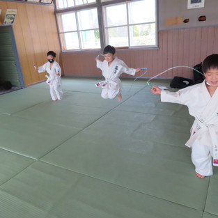 北斗市空手道場、新極真会北斗大野道場です。少し肌寒い日です。スポーツセンター近くの桜並木が色づいて、満開が楽しみです。今日のメニューは基本、円形逆突き、縄跳び、受け、組手です。豆拳士元気です。縄跳びは躍動してます。そして初めての組手です。仲良し三人組は一変し、突き蹴りを力いっぱい出す、激しい組手でした。ルイト君、上段蹴りが良かったです。ハルヒ君、突きが良く、突進力があります。トオル君、突き蹴りのバランスが良く安定感があります。みんな、今後が楽しみです。明日は七飯で頑張ろうね。