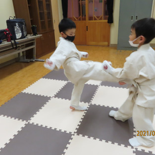七飯町空手道場、新極真会七飯鶴野道場です。基本、縄跳び、移動、コンビネーション、ミット、相対稽古と進めました。元気な豆拳士、楽しい稽古でした。相対稽古ですが、はらはらドキドキでした。突きが顔に当たりそうですが、よく動いて距離を置いてました。感が良いです。来週も頑張ろうね。